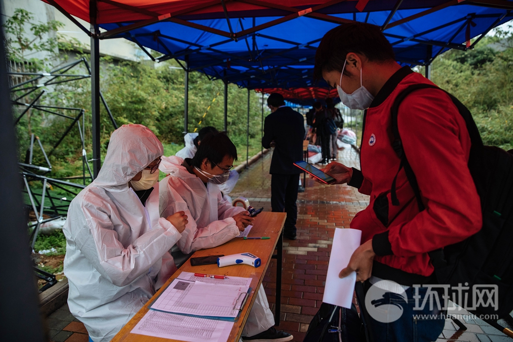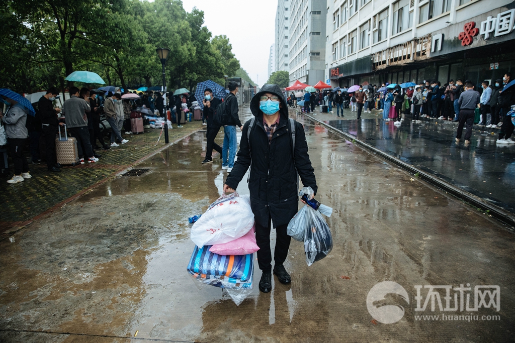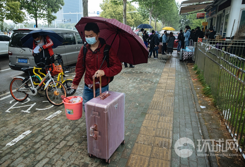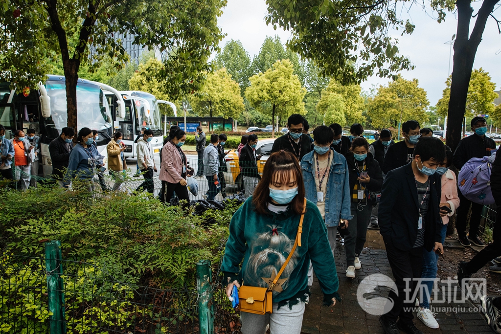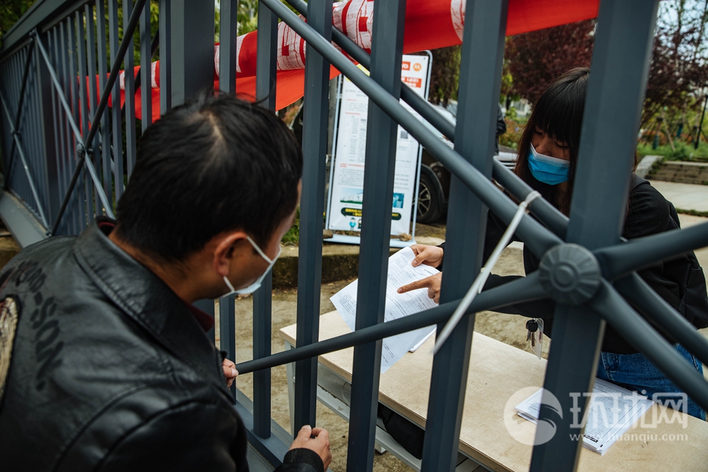 据工厂负责人称,武汉富士康工厂4月初复工以来,每天都有几百人排队求职,今天是最后一天。(环球时报-环球网记者 李昊/摄)