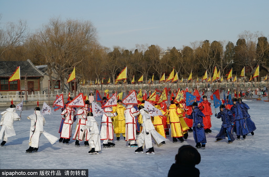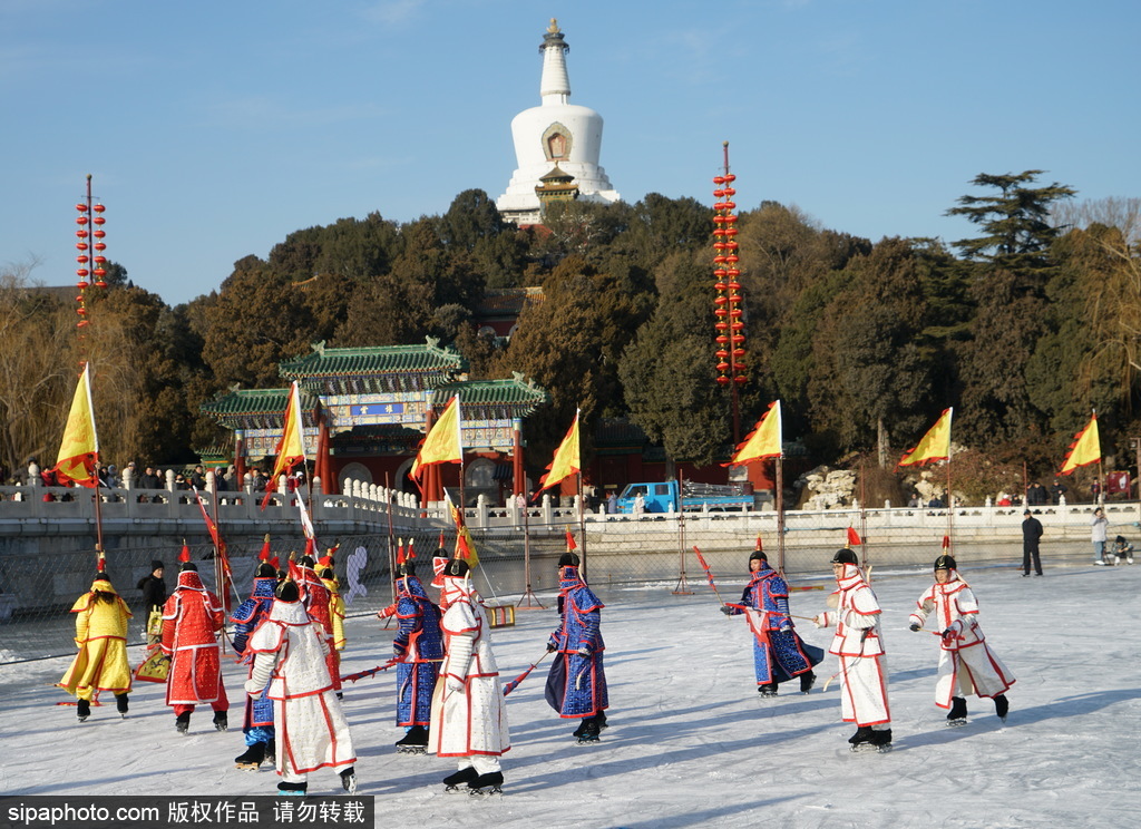 北海公园再现八旗“冰嬉”表演