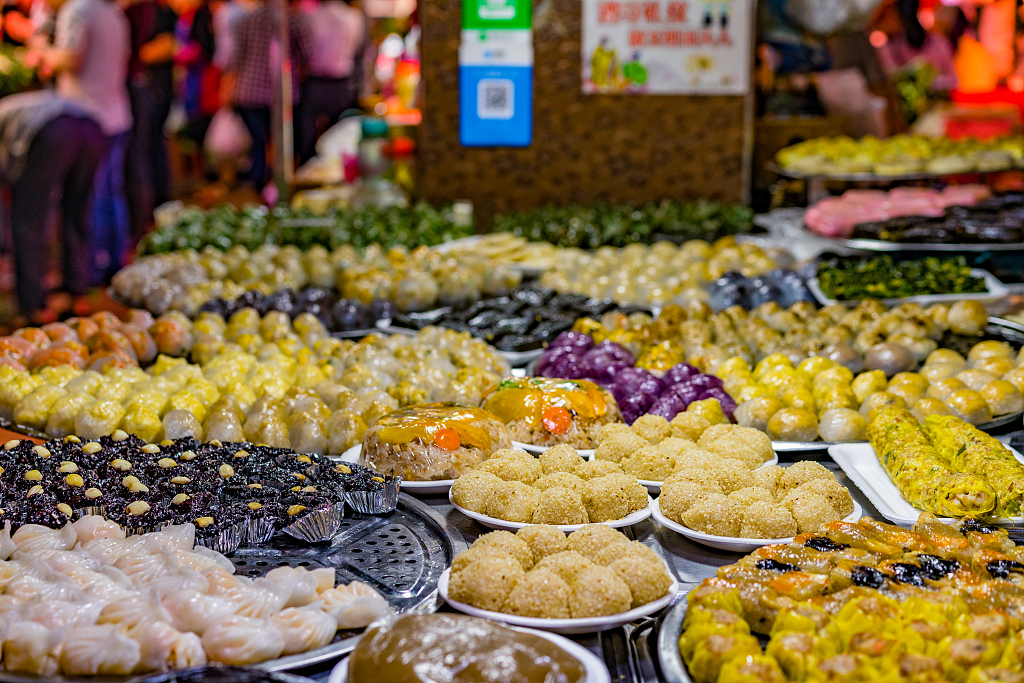 广东汕头龙眼市场内,摊贩售卖各式各样不同口味的粿。(来源:视觉中国)