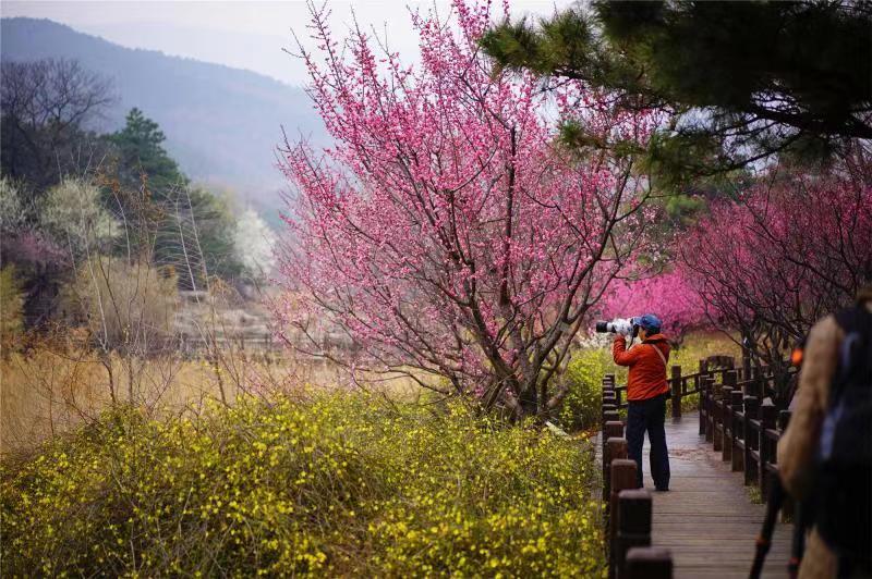观赏特点:近百个品种1000余株梅花次第开放,花香袭人,打造梅海飘香的优美景观。特别是走在梅园中的木质栈道之上,蜿蜒曲折,移步异景,犹如步入梅花花海,让人流连忘返。