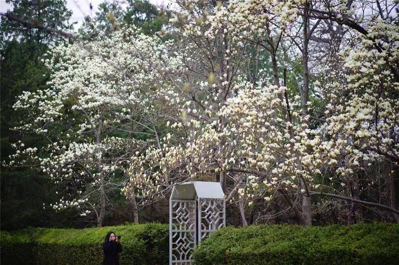 目前,园区内的白花山碧桃、辽梅山杏、玉兰、梅花、迎春花等都已进入观赏期。随着气温不断升高,北京植物园春赏百花的山水画卷也将徐徐铺展。近两年,为丰富赏花种类,增添春日色彩,补充花期空档,北京植物园在海棠园、木兰园、宿根花卉园等景区内及主干道周边,增植了碧桃、海棠、丁香、玉兰等20余种(含品种)近300株观花乔灌木,以及月季、鸢尾、铁线莲等30余种(含品种)逾1000株低矮类观赏花卉,逐渐打造出“花期不断档,周周有精彩”的优美景观,让市民游客在整个春天都可以畅游花海,充分感受春花的丰富多彩与植物世界的勃勃生机。