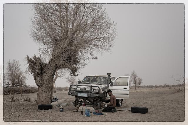 沙漠中刮一场风暴,前车留下的车辙就会消失不见。很多时候,在完全没有车辙可循,我开始有点担心时,热杰普淡定自若地转动方向盘,轻松地找到了正确的前进方向,因为这条路,他已经走了将近三十年,来往数十次。