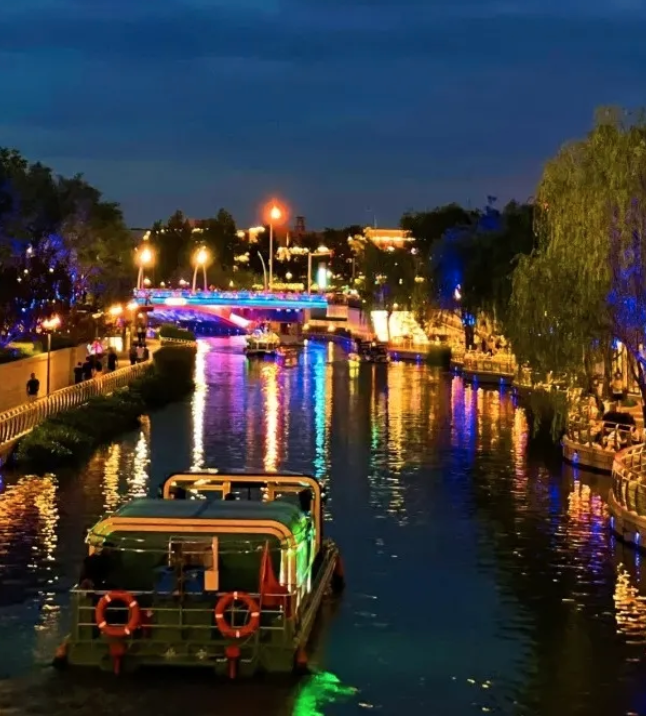 亮马河实现了18公里滨水绿道全面贯通,为市民游客提供了达369万平方米的滨河公园休闲空间和沉浸式水岸体验空间。位于沿线的蓝色港湾已经连续举办了15届SOLANA蓝色港湾灯光节,为京城带来一场视觉盛宴。亮马河夜航航线傍晚六点开船,营业至凌晨。