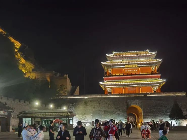 在长城夜色中体验演出、互动灯光秀、沉浸式夜间情景演艺等各种文化活动。演出采用“行进式观演”模式,还安排了NPC(非玩家角色)互动、特技飞车以及多款特色非遗小吃、氛围感满满的打卡装置等,身临其境地感受长城魅力。