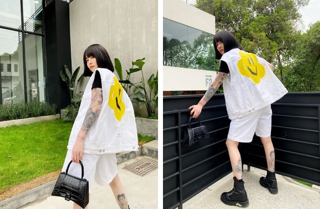 牛仔马甲搭大裤衩,再配一双马丁靴,马丁靴有多酷你们感受到了吧,一年四季都可以穿的酷炫单品可以闭眼入了!