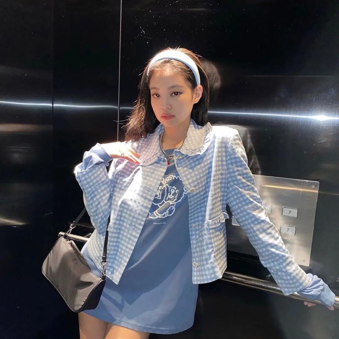 仔细看能发现,Jennie戴的是今年最火的、微微发泡感的发箍,能很好修饰脸型,再造一个高颅顶!可以调节脸型比例,显脸小。