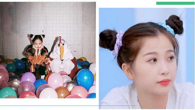 还可以像Jennie、虞书欣这样扎两个丸子,再套发圈。