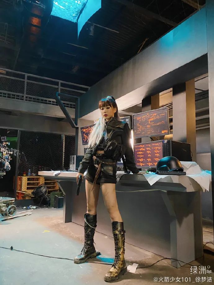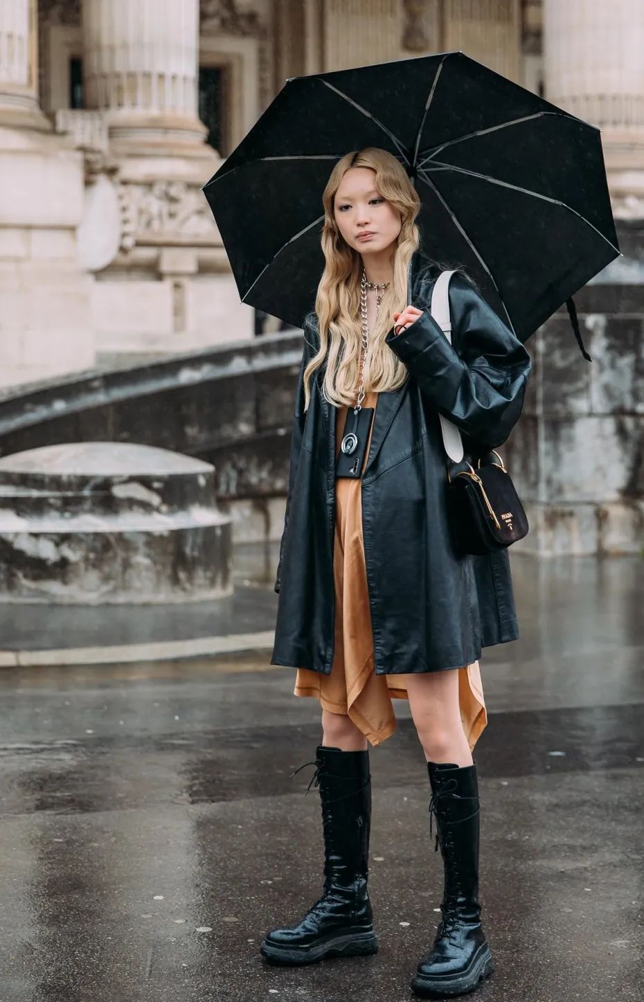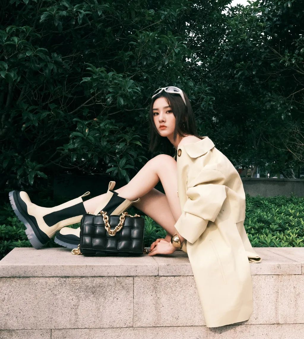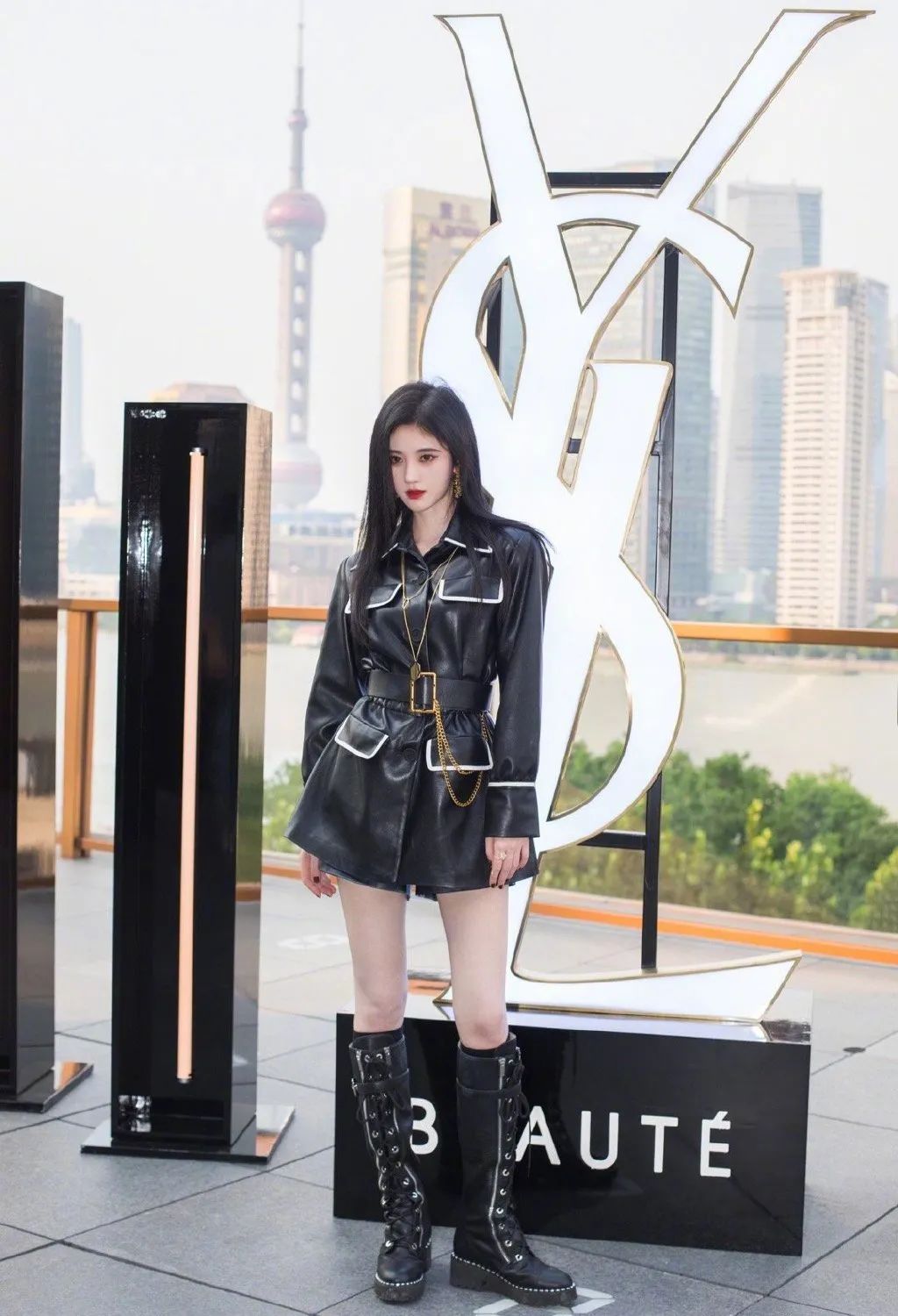 一身黑色皮衣搭配拉链及膝马丁靴的鞠婧祎,小仙女也可以变身英姿飒爽的女王。一条宽腰带亮出腰线,加上长靴加持,适当的露出一截腿就能一秒开启腿精模式。