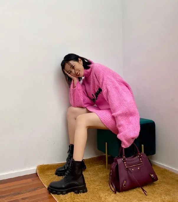 一直都走在流行前线的周雨彤,夏天一结束就用一件oversize毛衣搭配系带马丁靴,“下半身消失”的穿搭又酷又性感,马丁靴的硬朗气质让桃粉色毛衣变得甜中带酷,抓住秋初的时间,同款可以穿起来了!