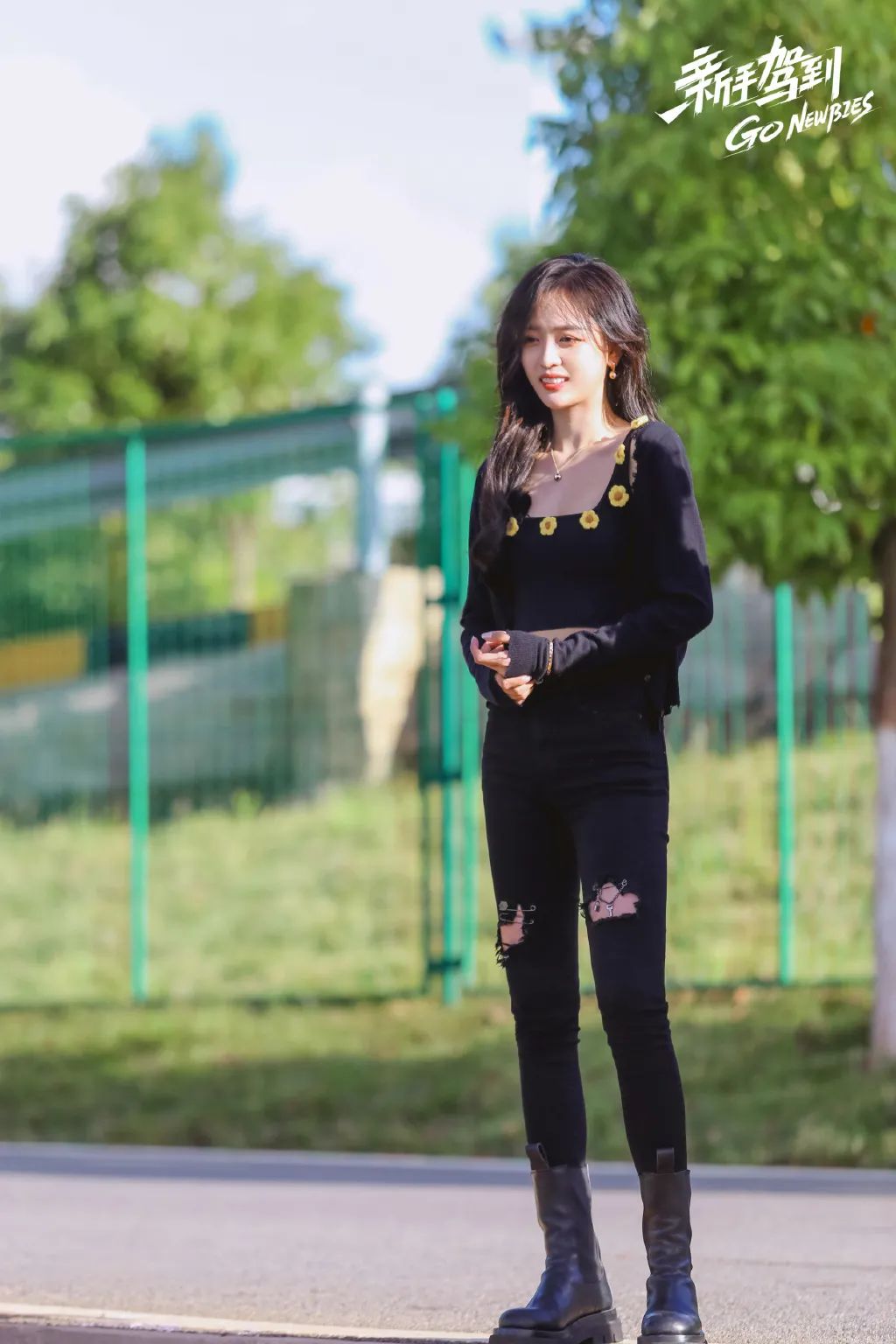 牛仔裤当然是马丁靴的最佳搭档,在《新手驾到》里的“小白”吴宣仪就用一条黑色破洞牛仔裤搭配同色系切尔西马丁靴,上衣一件雏菊小背心配针织开衫,顺色的穿搭仿佛开了“长腿”特效,谁穿谁知道!