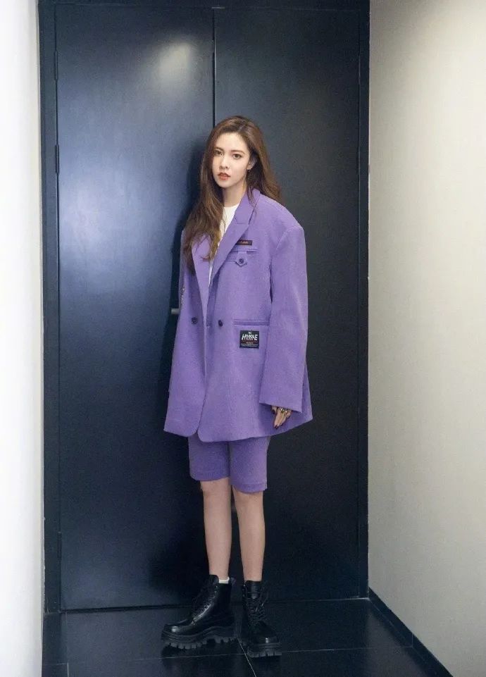 全套西装OL风?马丁靴照样hold住,紫色oversize西服套装又酷又飒,配上马丁靴作为“不知道穿什么,就会拿出马丁靴做搭配”的马丁靴宣传大使,宋妍霏勇用实力诠释用马丁靴这一件单品搭出100种不同风格。