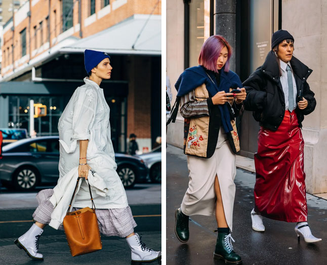 早在夏天,马丁靴已经被各路小花潮人穿得飞起,也正是因为它的百搭,马丁靴作为经典的鞋靴受欢迎程度经久不衰。作为永不过时的时尚单品,起源也非常具有传奇色彩,一位叫Dr. Klaus Maertens的医生和他的朋友在阿尔卑斯山滑雪,不慎摔伤了脚,在康复过程中,为了使自己走路轻松些,他发明了这种具有柔软牛皮,橡胶平底和软垫的马丁靴。