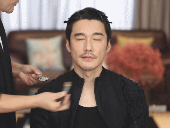 毛戈平的手法之所以厉害是因为他能够根据不同的面部状况来设计妆容,这次针对胡兵的妆容重点在于“年轻”和“自然”上。