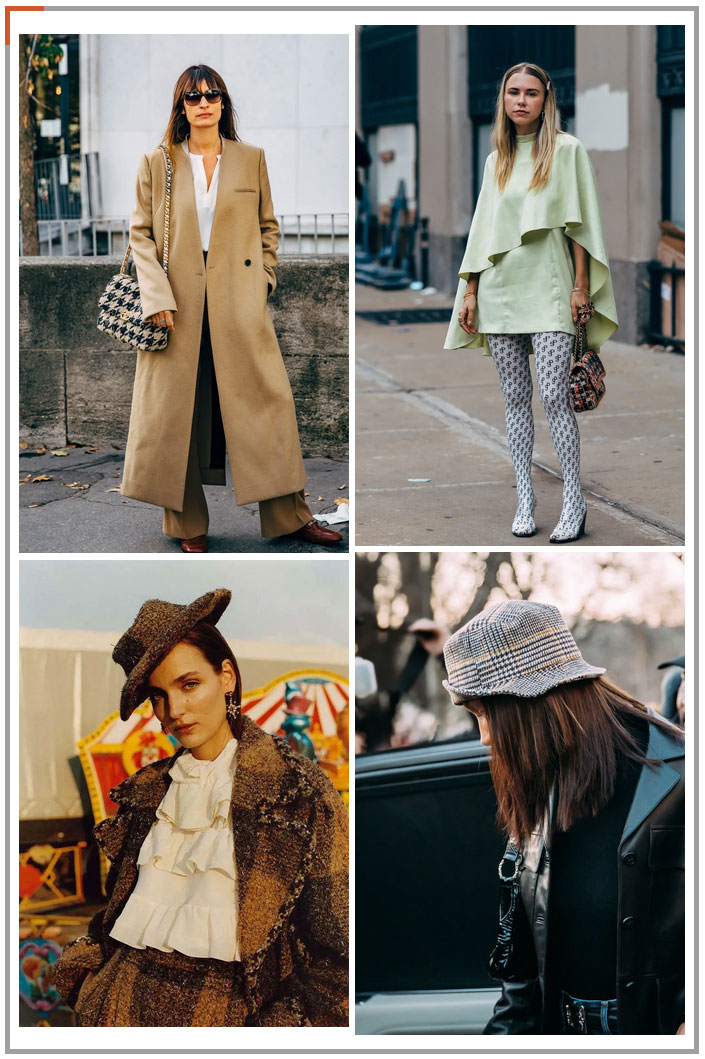 秋冬款式的帽子,像是贝雷帽、渔夫帽,换成粗花呢面料更是保暖和凹造型的佳品,还没尝试过粗花呢面料的集美们,不妨从小配饰开始入手!
