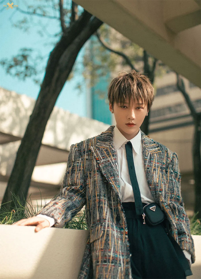 自带气场的刘雨昕则用白衬衫、细领带搭配起了粗花呢外套,西装的版式和粗花呢的融合有一种恰到好处的复古感,不同于常规颜色的优雅,抽象的花纹无无序中有自带章法,宽松廓形的设计有着“男朋友”般的率性风。腰带款式的“收费员”包包让酷感更上一层~