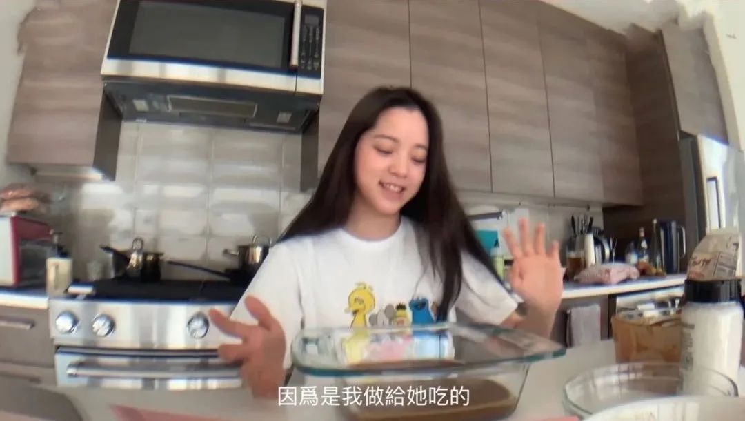 作为可爱教主的她,把vlog拍得有模有样,早上起床睁眼素颜亮相,还给自己贴上了可爱的小贴纸滤镜。接着从收拾家务、护肤、吃早午饭一样不差,超级敬业。