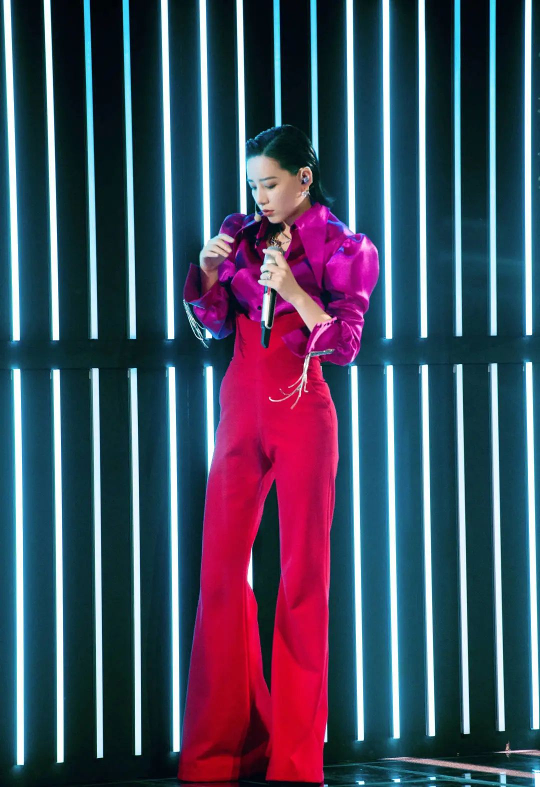 像周笔畅这样来一件连体裤装最简单省事了,她在《乘风破浪的姐姐2》三公开场秀中的造型气场全开,一举一动怎一个“飒”字了得。