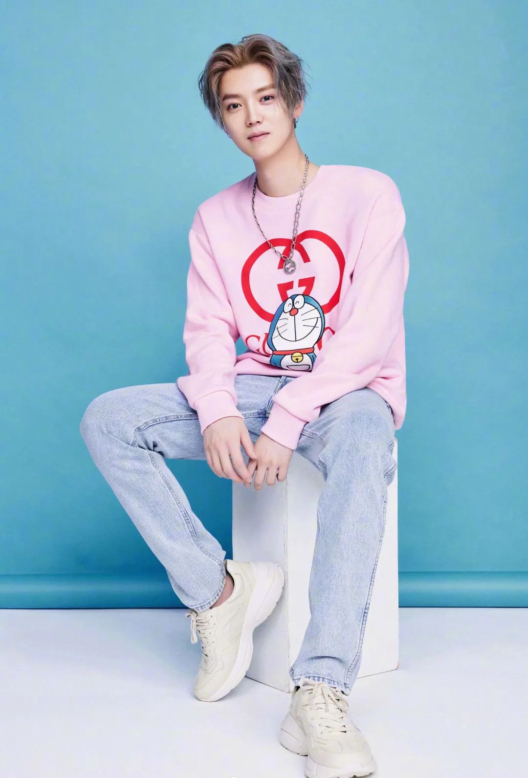 第三种是粉色与蓝色,可以是孔雀蓝也可以是湖蓝色,区别是前者更有气场而后者则显得活泼一些。鹿晗粉色卫衣和蓝色牛仔的组合清爽明媚,浪漫梦幻,给出了一个万能穿搭公式。