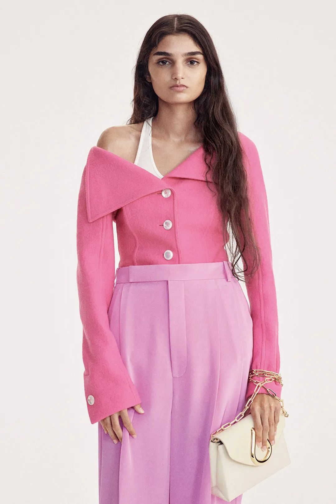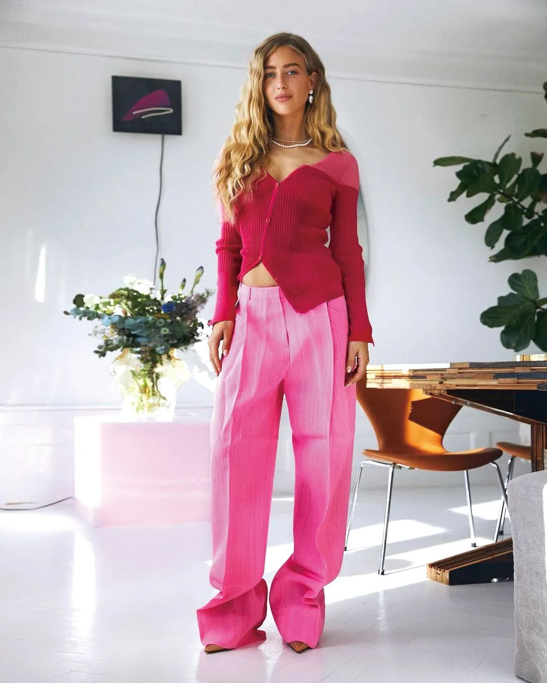 也赋予了粉色反叛的气质,即便与白色衬衫搭配也不会太过恬静。