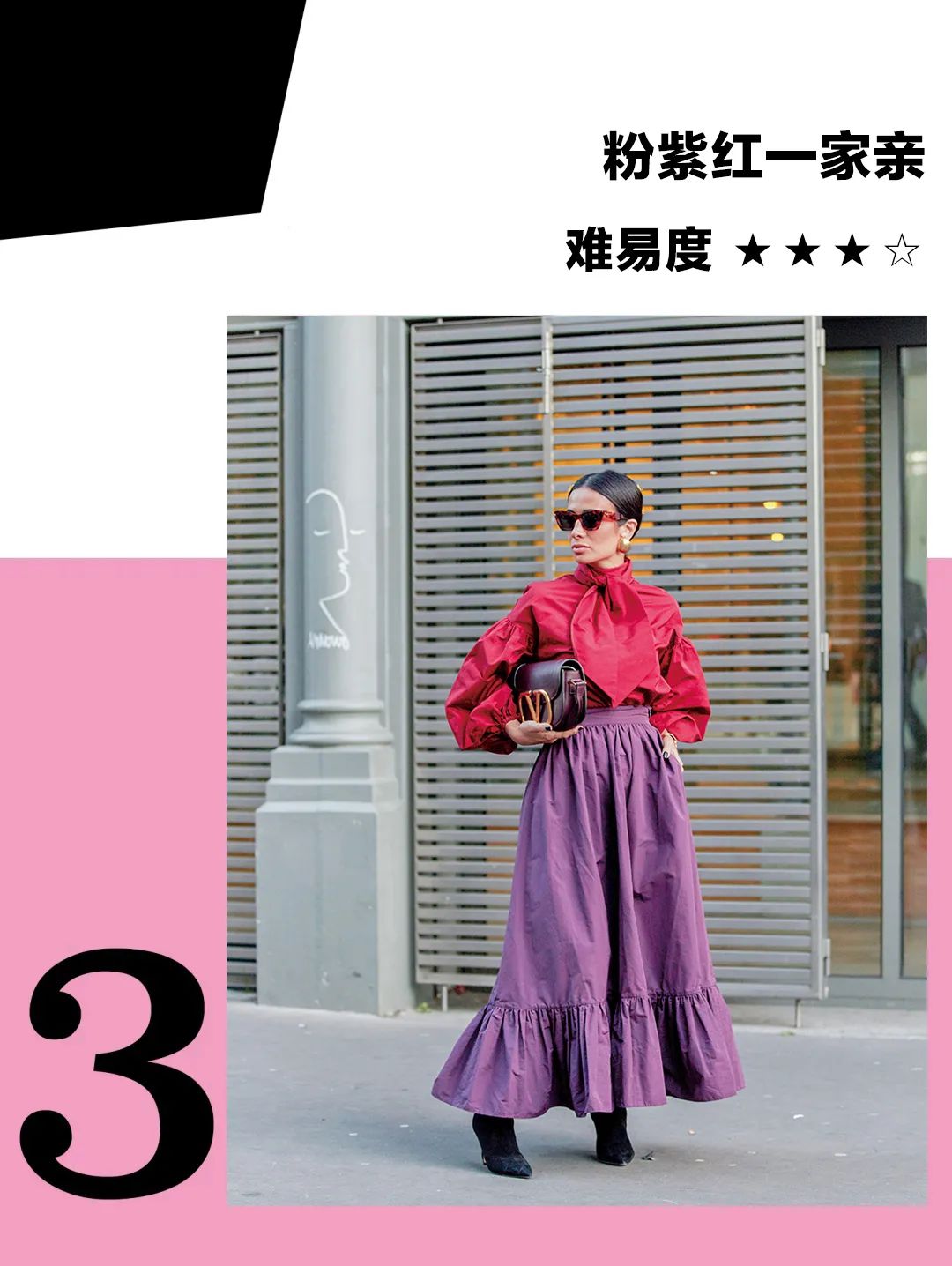 如果是与红色配,粉色就来到相对次要的位置,可是如果与紫色配呢,粉色又变成了绝对的主角。