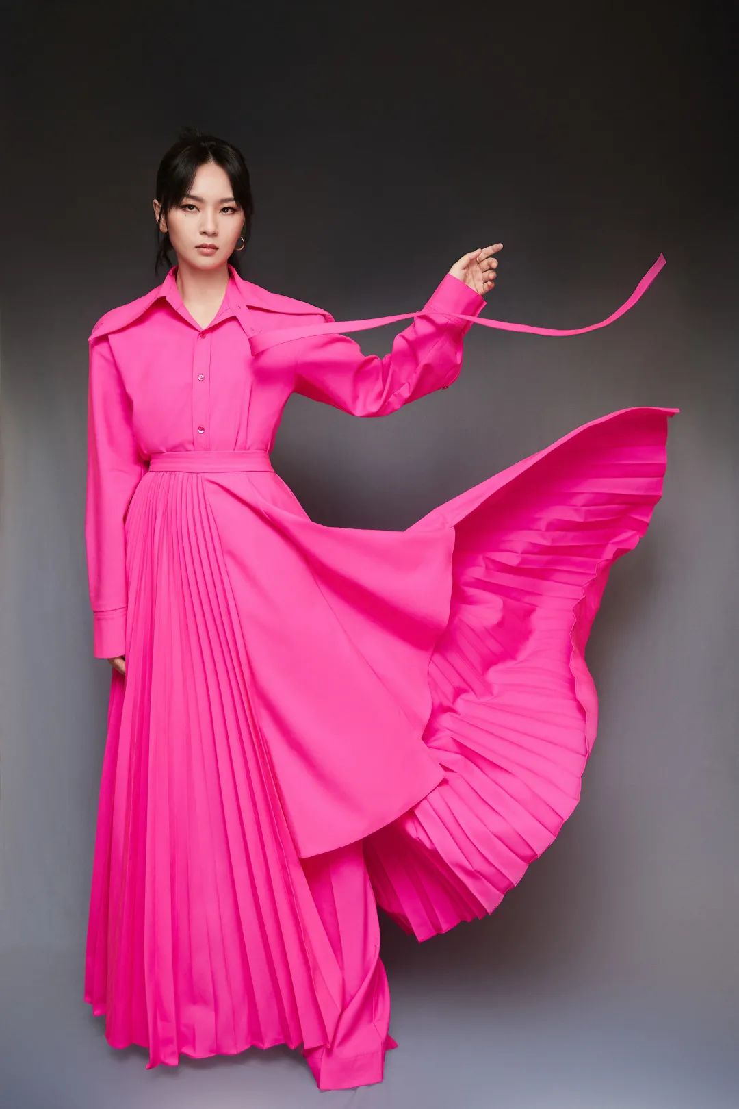 笔笔的另一套粉色造型也十分抢眼,衬衫+阔腿裤+百褶裙都是妥妥的艳粉色,周笔畅驾驭这样的颜色已经非常得心应手了。