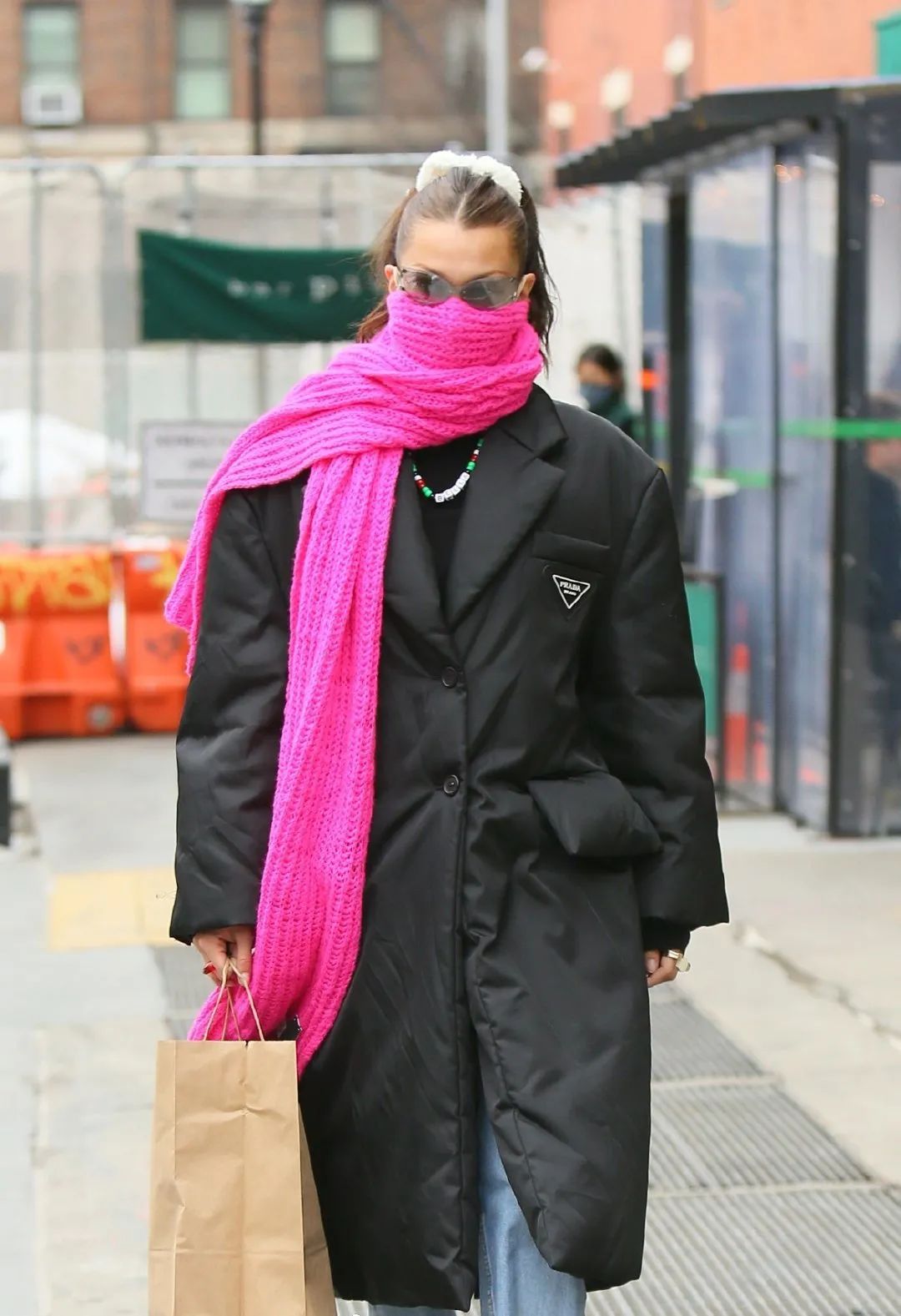 大面积的黑色将改变人们对粉色的惯性思维,看到 Bella Hadid 这组街拍造型,你一定会抛弃粉色给人“可爱、芭比、嫩”等形容词的刻板印象。
