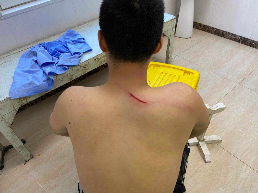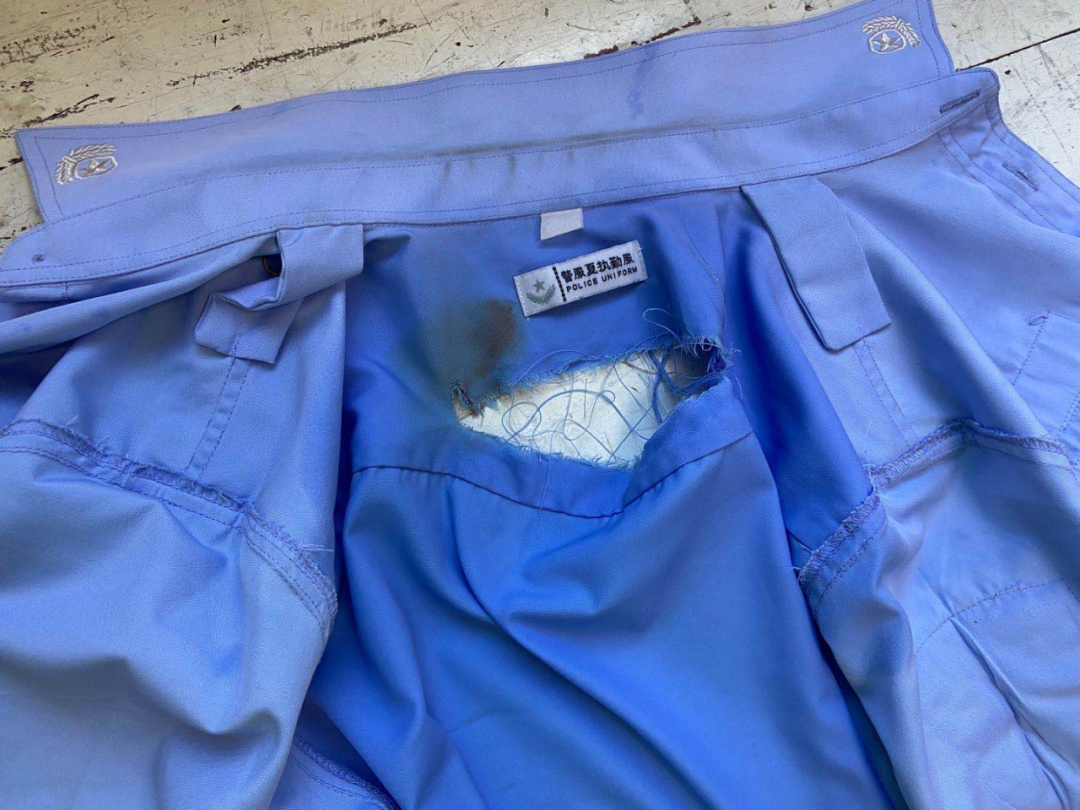 固定好广告牌后,陈天正回到单位脱下警服时,发现后背划伤的口子有30厘米长。