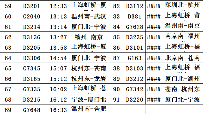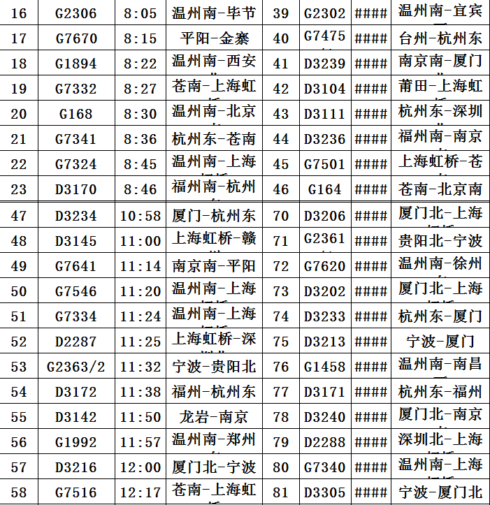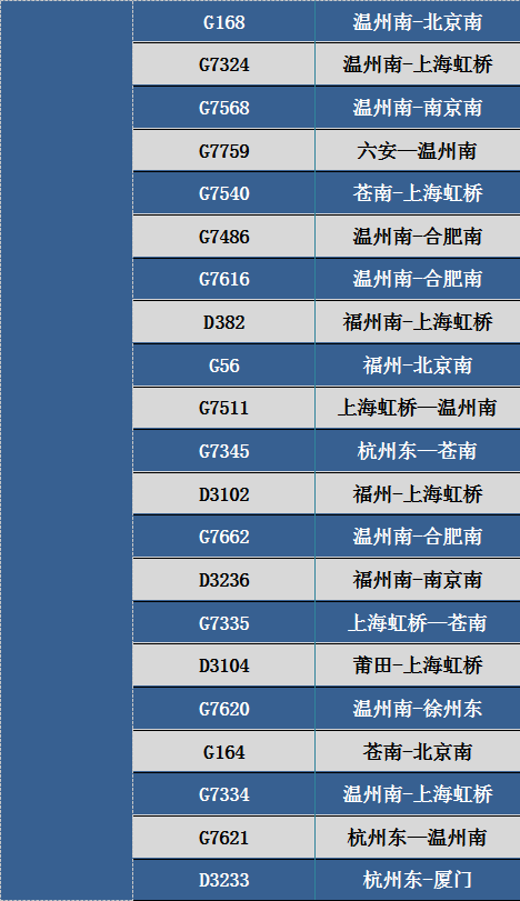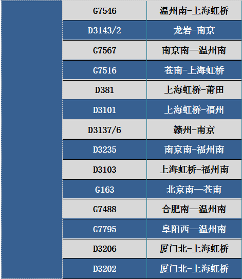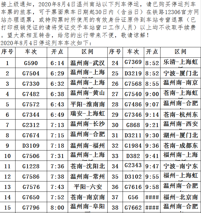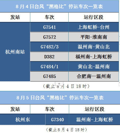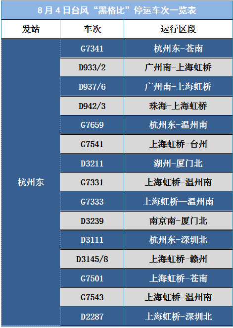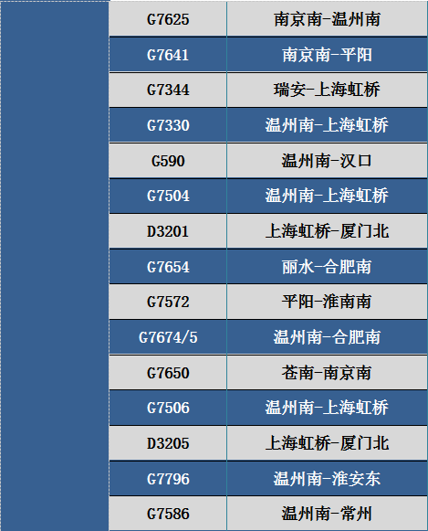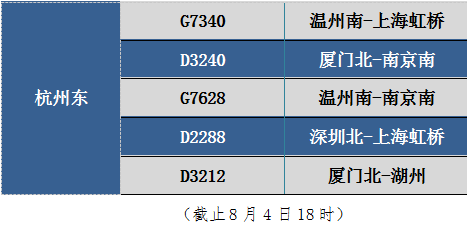 此外,8月4日、5日途经杭州运行至温州、苍南等东南沿海地区部分动车组列车。