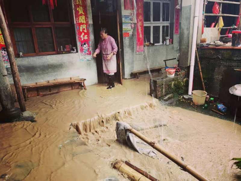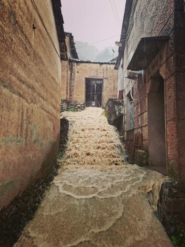 仙居县湫山乡三都村雅溪自然村,山水爆发,大半个村已经进水,目前村里正积极转移村内老人,由年轻人坚守应急抢险。