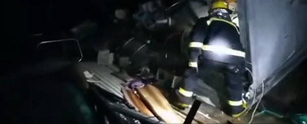 8月4日3时20分,大荆消防救援站7名消防指战员在出警途中经过104国道的清江大桥时,发现在清江大桥上有辆小货车侧翻,车辆附近一名男子趴在清江大桥上,情况十分危险,急需救助。
