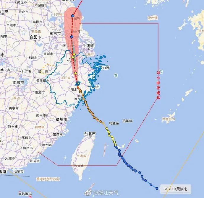 “黑格比”11时在磐安县,强热带风暴级(30米/秒),未来继续向偏北方向移动,强度逐渐减弱,经金华、绍兴、杭州、嘉兴等地,夜里离开我省进入江苏。