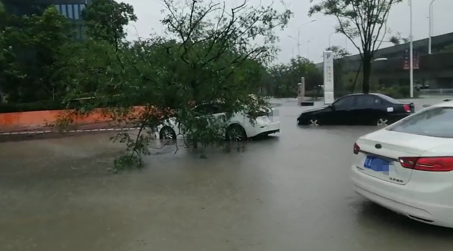 上午10点20分左右,93记者在温州市三江立体城观察到,出口处积水较多,且有多车被困。