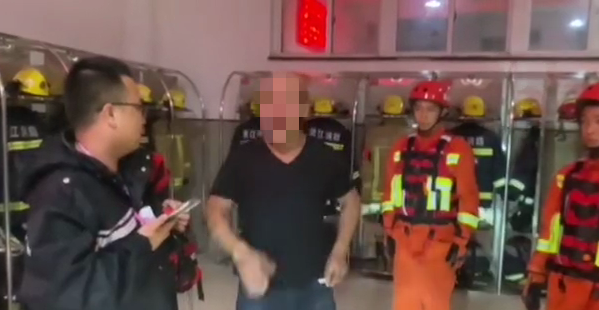 救出后的男子意识较为清醒,救援人员也对其进行了劝诫,让其和家人尽快进行转移。