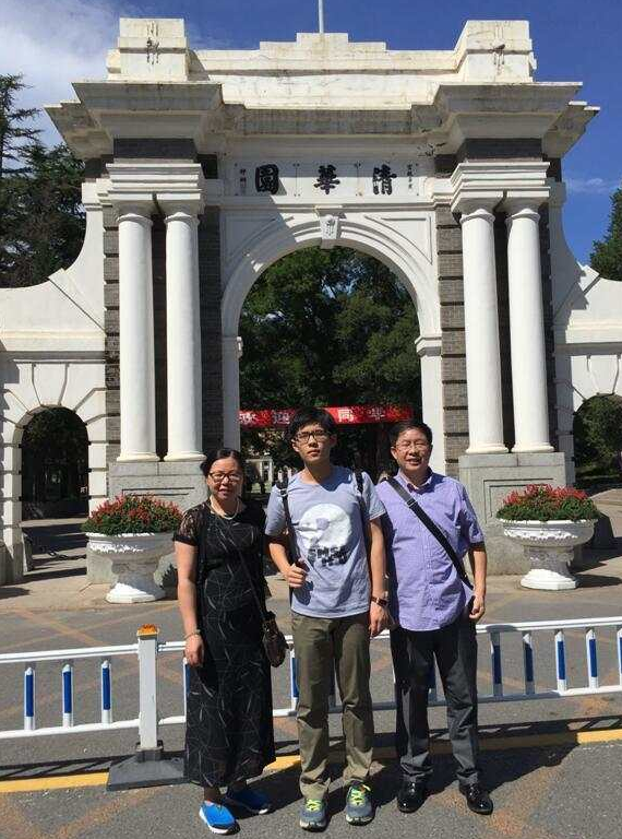 陈逸贤和父母在清华大学合影