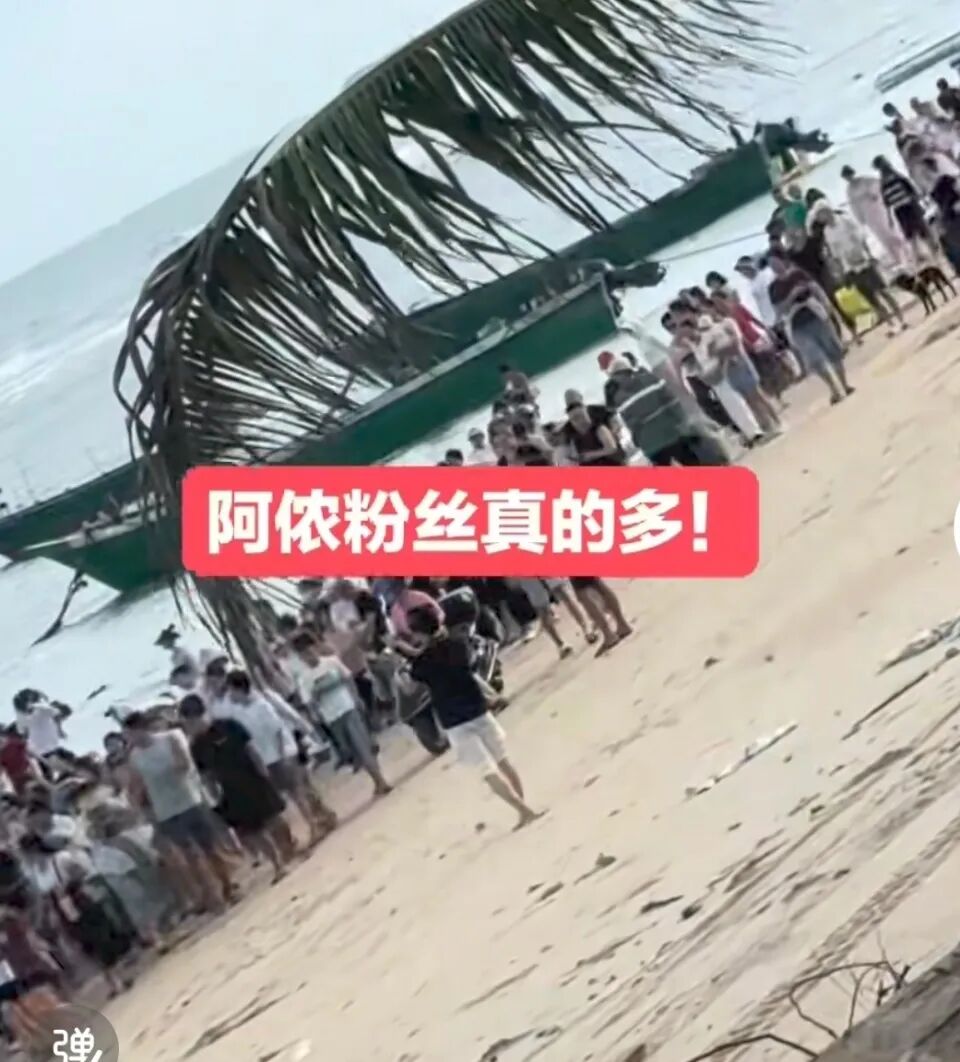 海滩上围观“阿侬”的人群。图/社交平台