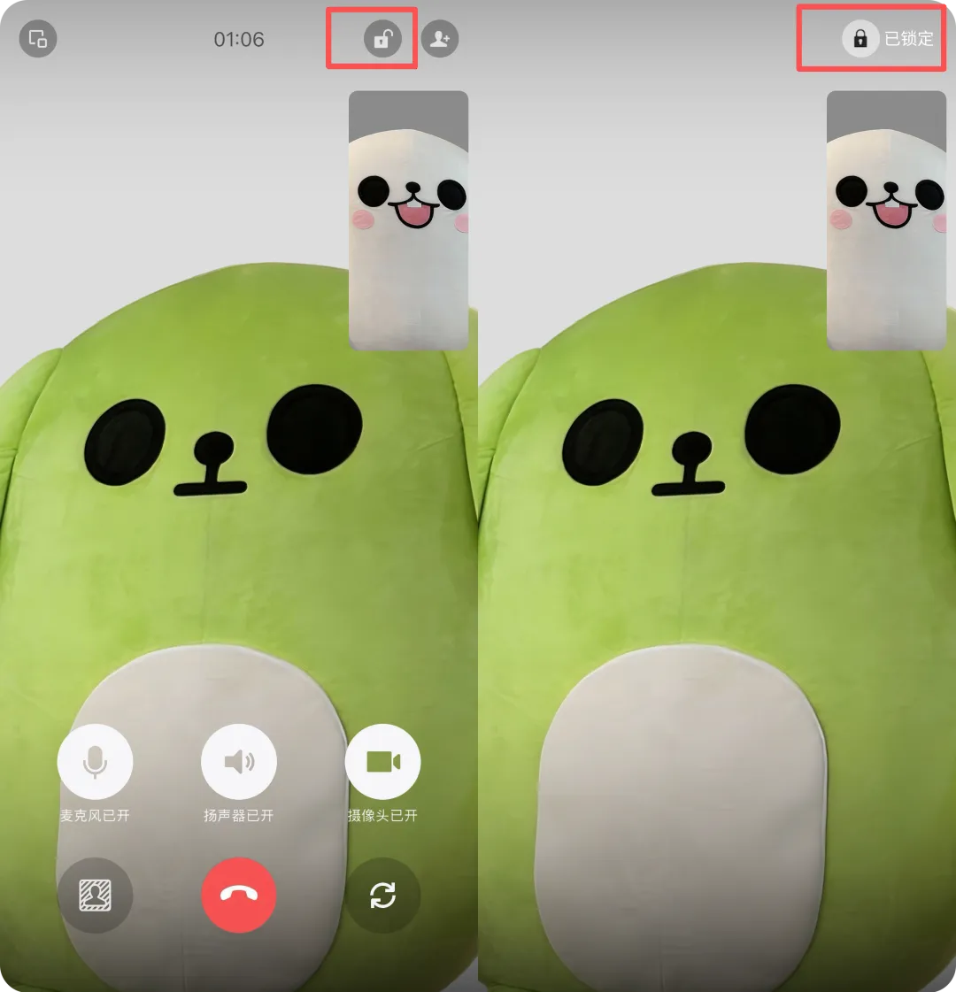 3.不掉线的锁:有些人视频聊着聊着就没了,可能是误触点了挂断。现在微信视频能锁定屏幕了。微信视频时点击右上角锁定图标,即可锁定屏幕。