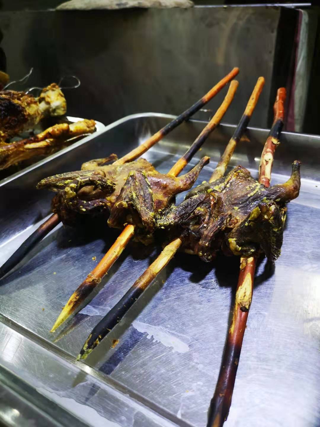新疆是烤肉的“故乡”,你只要在新疆,随时随地都能看到烤串的“身影”,而夜市的烤肉除了铁签烤肉、红柳烤肉外,还有外焦里嫩、咸辣适口的烤羊肠;浓香四溢的烤鸽子;劲道耐嚼的烤板筋……
