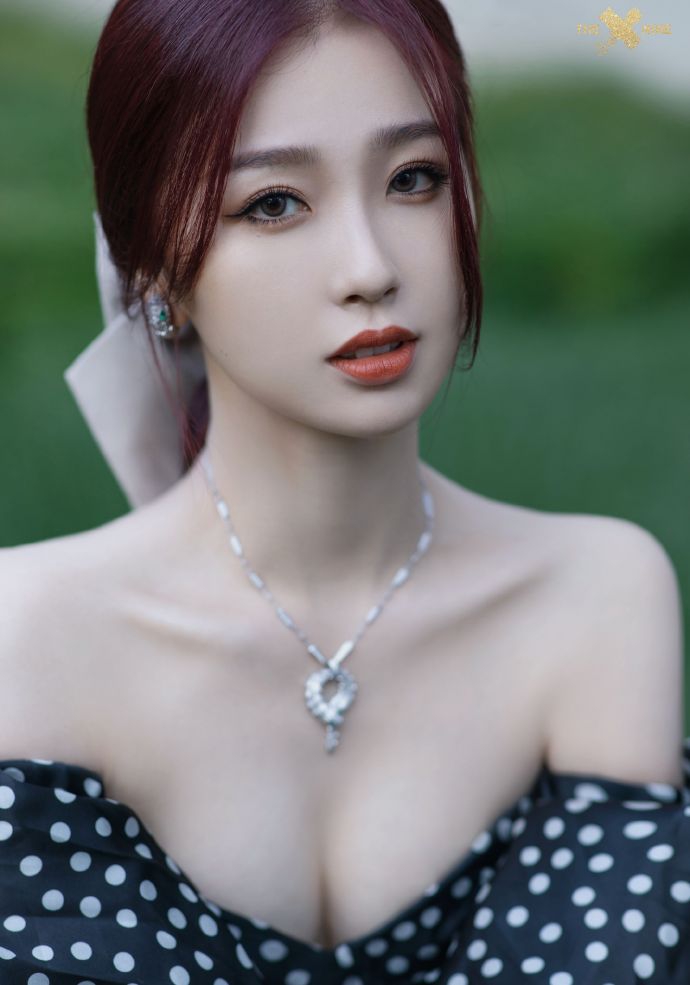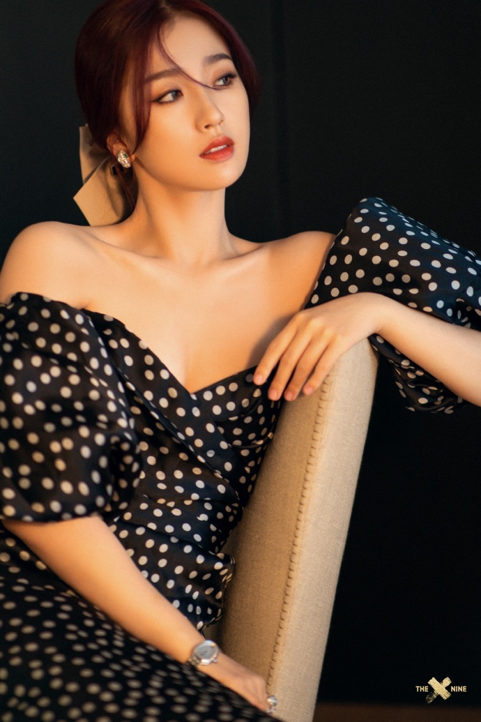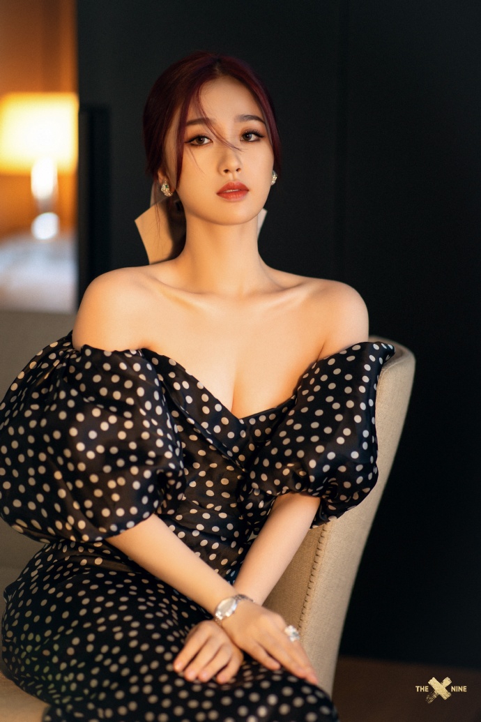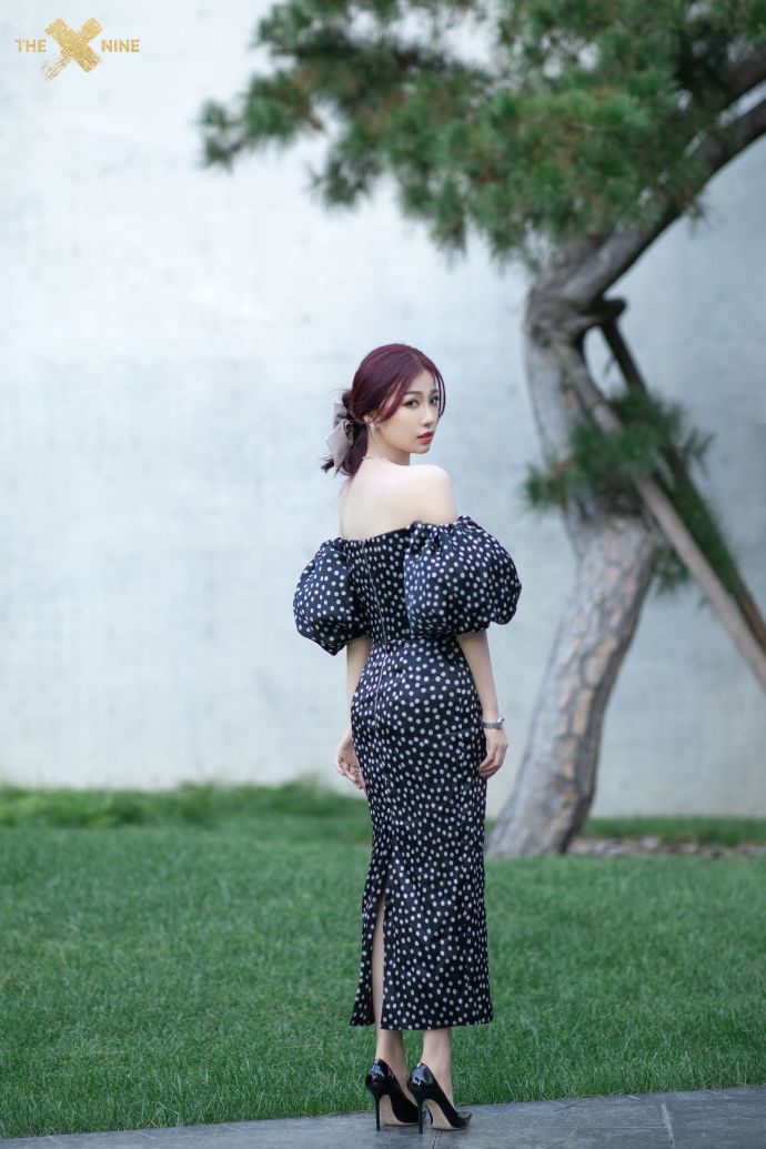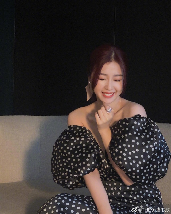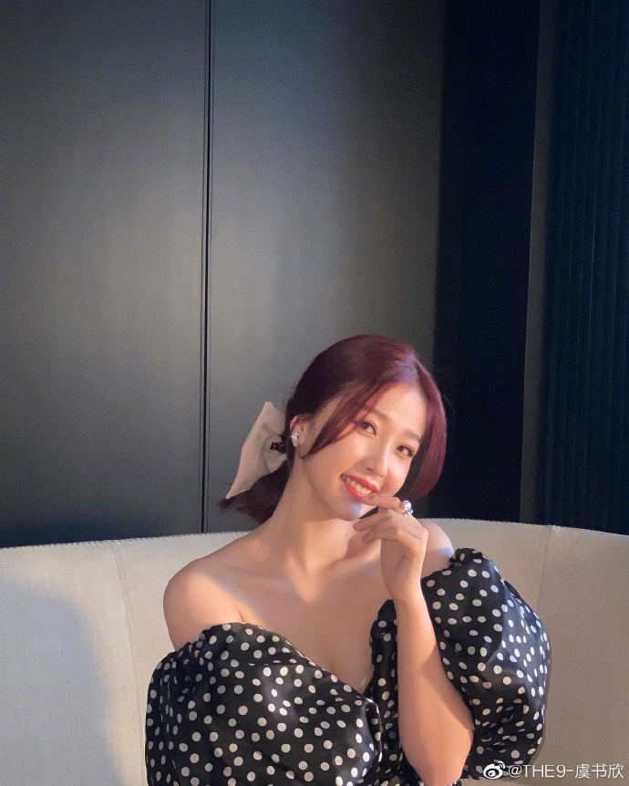 近日,THE9官博晒出虞书欣参加活动的造型图。虞书欣身穿黑白波点泡泡袖长裙,手拿撞色绿色小包,风格复古浪漫,秀出纤细锁骨和细腰翘臀。