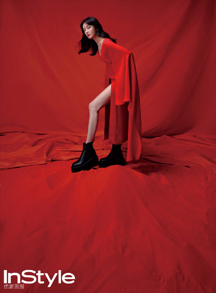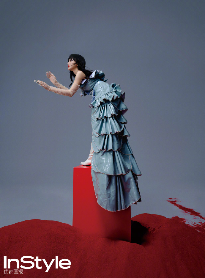 近日,秦岚最新写真大片曝光,换上多套低胸、开高衩的性感长裙,搭配泪痣妆容,尽显女神气质。
