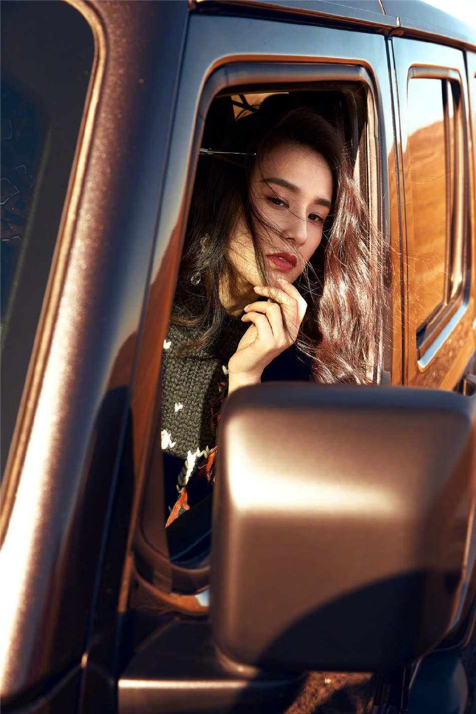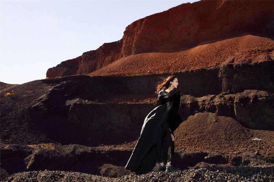 近日,黄圣依一组秋冬公路大片释出。照片中,黄圣依在火山岩浆公路上身穿黑袍落座皮卡酷飒迷人,造型百变肆意张扬,任风吹拂凌乱的头发呈现野性与风情之美。