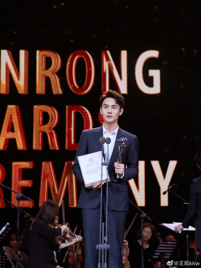 王凯获“文荣奖”最佳男主发文感谢 西装革履秀笔挺身材