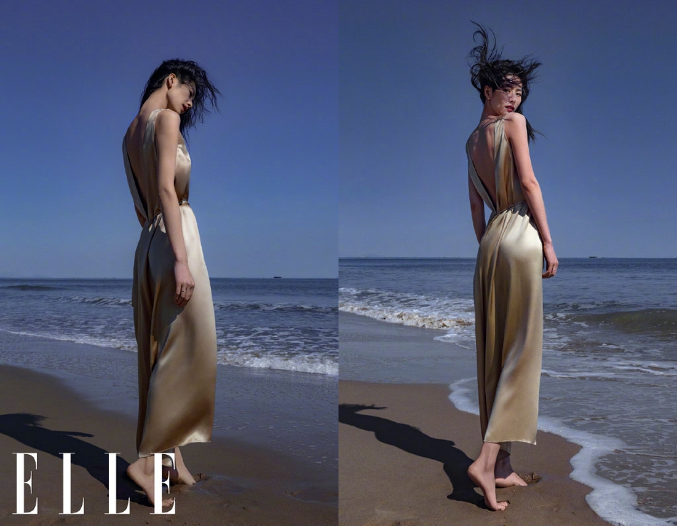 刘雯冬日海滩封面大片释出 深v造型露美背优雅性感