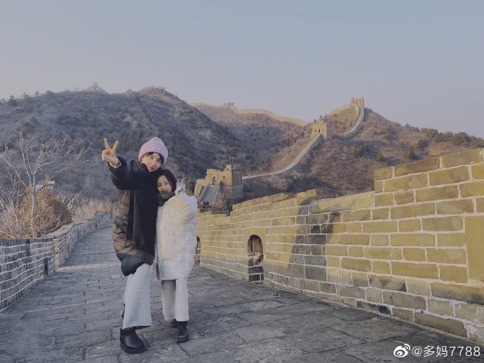 孙莉带多妹黄少艾周末度假 母女俩长城上自拍好温馨