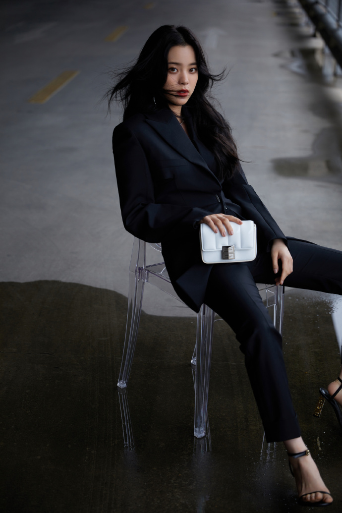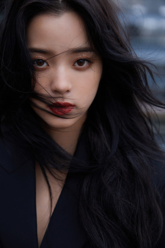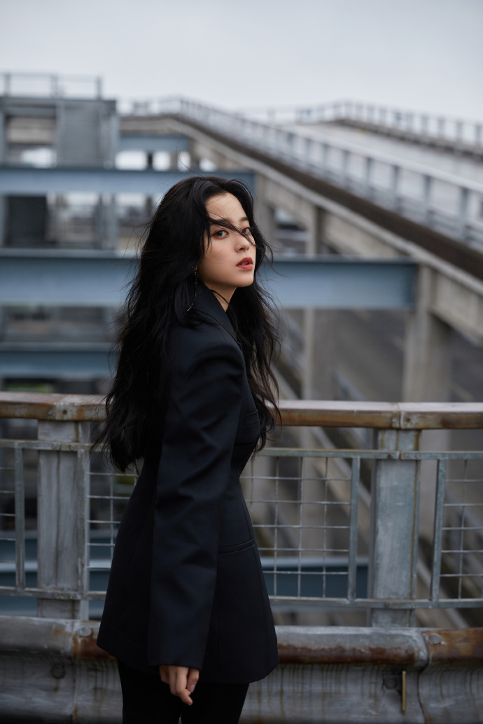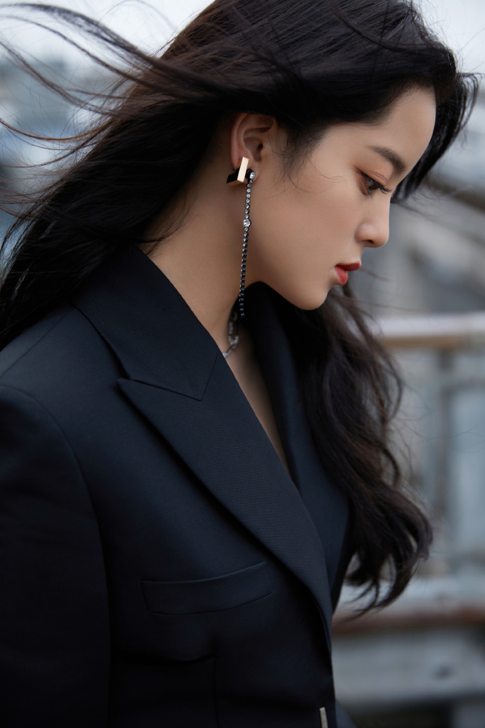 欧阳娜娜穿黑色西装小露深V 坐姿霸气眼神撩人
