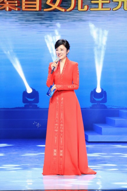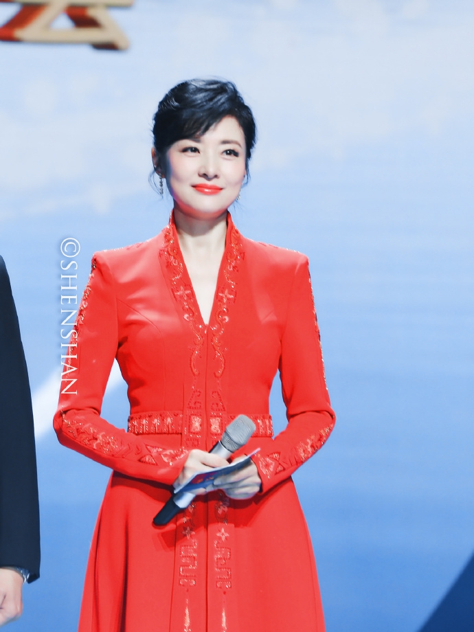 50岁周涛一袭红裙主持活动 端庄大气不输小花