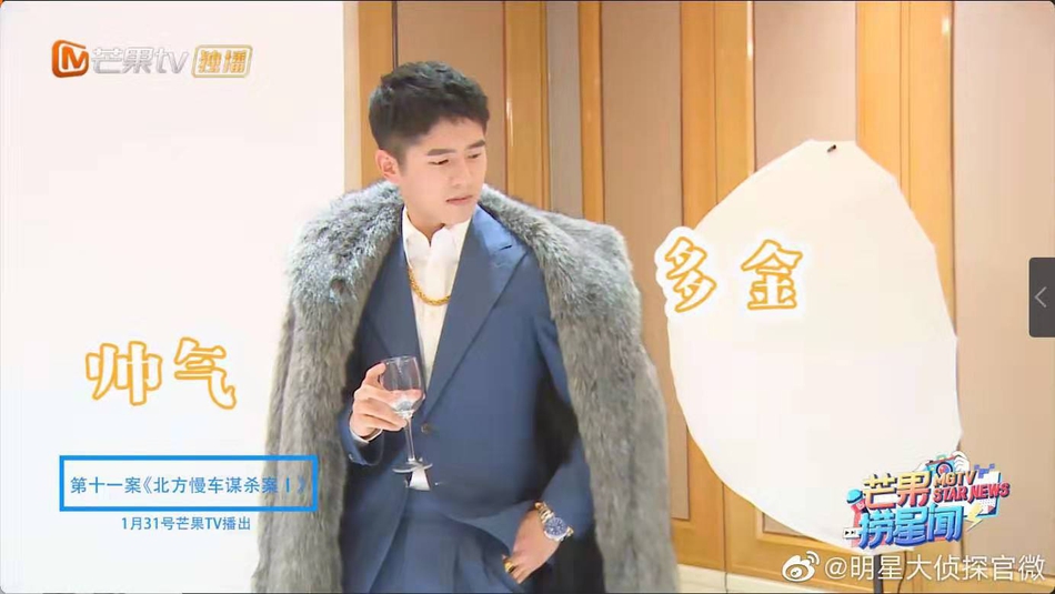 近日,《明星大侦探》官微上传了一组刘昊然的剧照,照片中刘昊然身穿貂皮大衣显霸总气质,大金链子配手表土豪风十足。