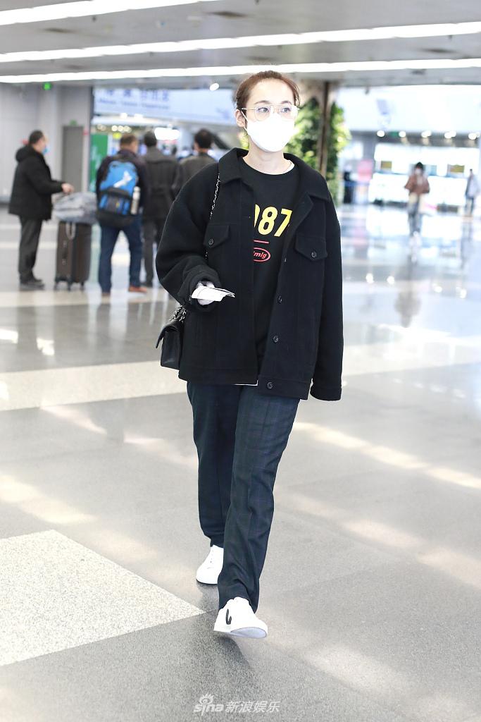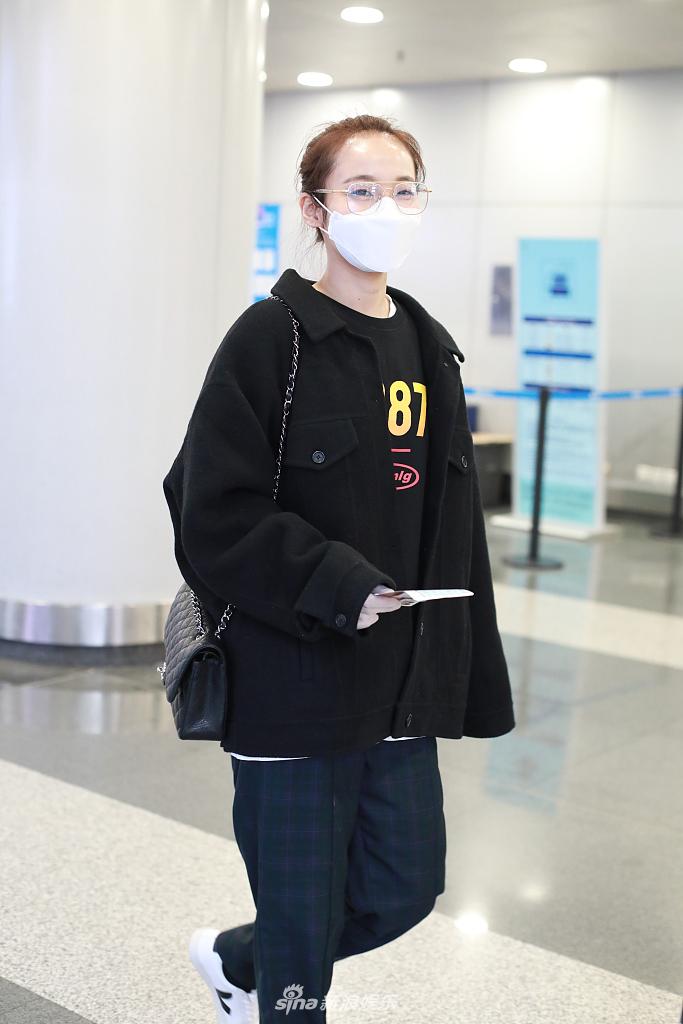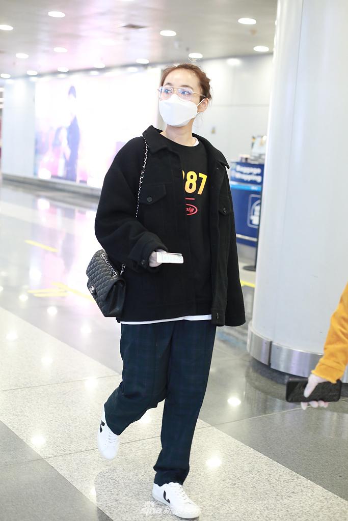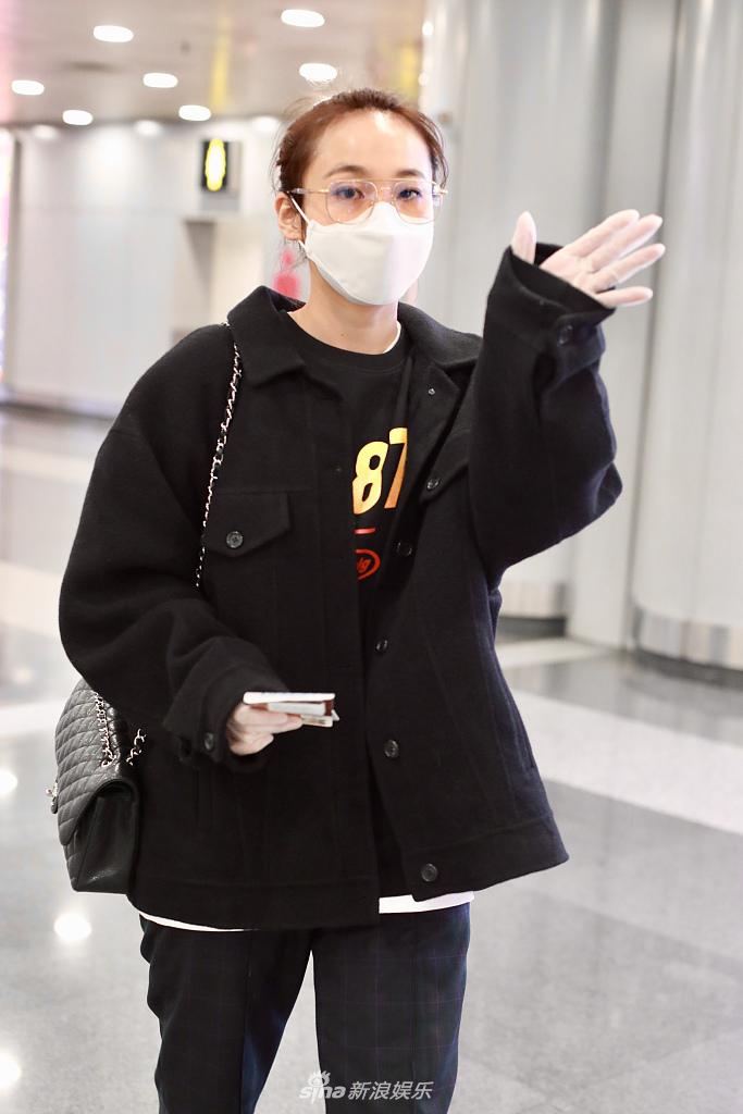 2020年3月24日,北京,张佳宁早前现身机场。她扎起头发戴眼镜显斯文,对镜头挥手显亲和。