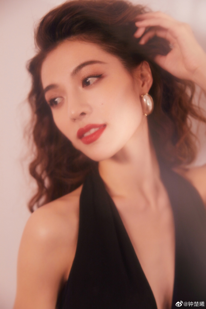 近日,钟楚曦在社交平台晒出一组照片。她穿着深v领开叉长裙秀出性感身材,搭配羊毛卷和红唇妆容,十分复古优雅。