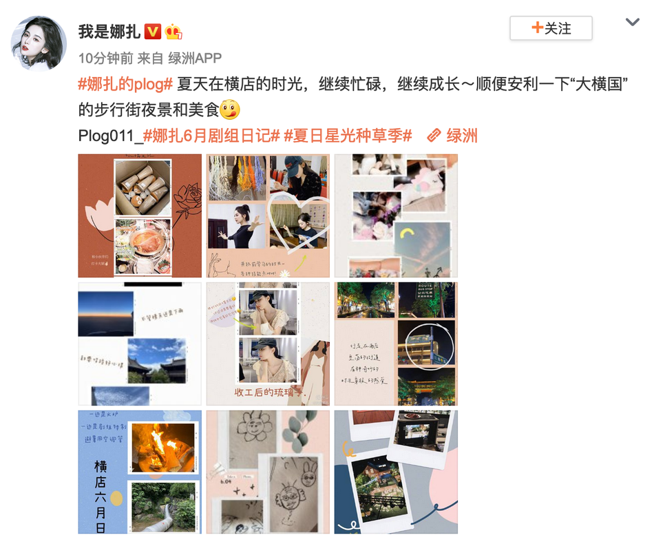 6月22日,古力娜扎在绿洲晒照分享剧组日常,并发文:“夏天在横店的时光,继续忙碌,继续成长~顺便安利一下‘大横国’的步行街夜景和美食”。