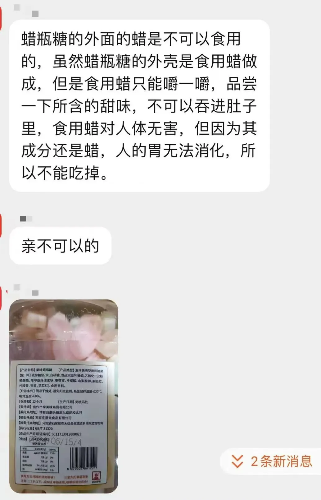 对于“蜡瓶糖”的食品安全问题